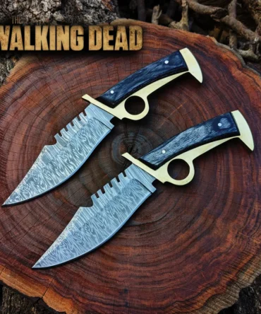 Walking Dead Knife: Replica Bowie Daryl Finger Guard Damascus Steel Knife With Brass